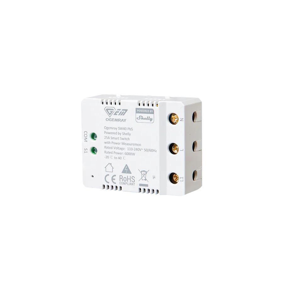 De Ogemray Smart Relay 25A is een krachtige slimme relaismodule, ontwikkeld voor het veilig en nauwkeurig schakelen van zware elektrische verbruikers tot 25A / 6000W. Dankzij de geïntegreerde Shelly-technologie combineert dit relais industriële betrouwbaarheid met geavanceerde smart home- en gebouwautomatisering.