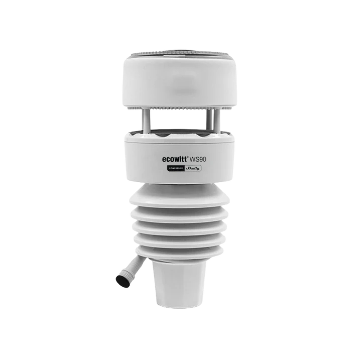 De Ecowitt WS90 7-in-1 weerstation is een geavanceerde, onderhoudsarme oplossing voor wie nauwkeurige weersgegevens wil combineren met slimme automatisering. Dit compacte buitensysteem meet wind, regen, temperatuur, luchtvochtigheid, UV-index, zoninstraling en luchtdruk in één enkel apparaat.